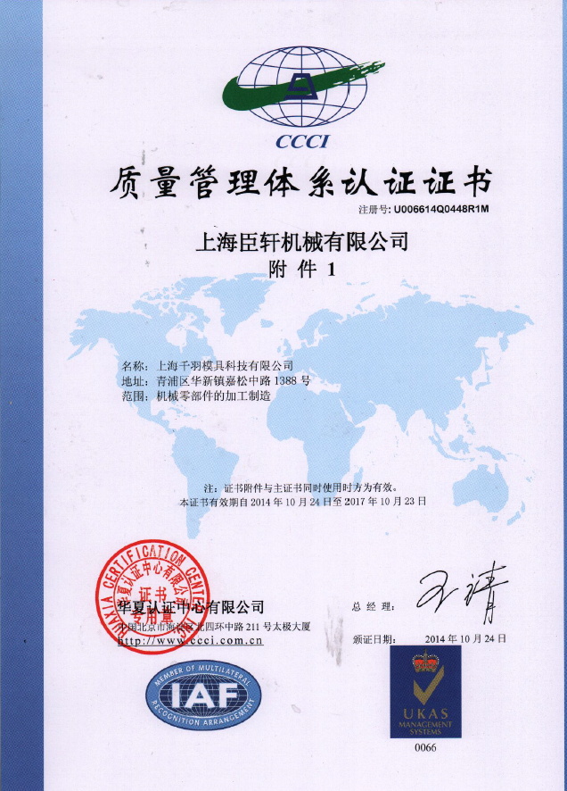 质量体系认证: ISO9001:2000/ANSI-RAB认可证书